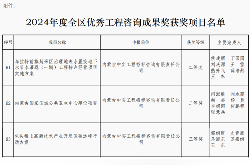 2025-04-169990 次2025年4月16日,内蒙古工程咨询协会公布了2024年度优秀咨询成果奖获奖单位名单,我司取得两个二等奖和一个三等奖,我司专业能力和服务质量再次获得行业的认可。此次获奖,不仅体…